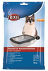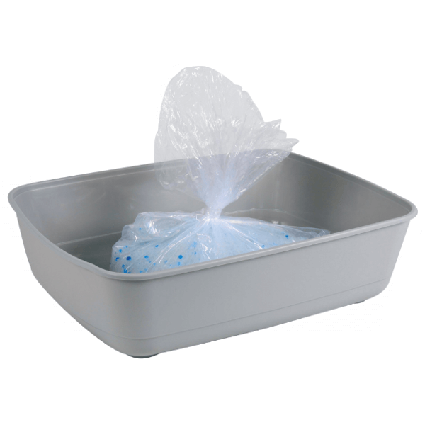 Sposób użycia: otworzyć kuwetę i wyłożyć folię na spodzie kuwety, tak aby wystawała poza wszystkie brzegi kuwety. Wsypać wyściółkę do kuwety. Wystające poza brzegi części folii przytwierdzić ramą albo pokrywą. Wyeliminować ramę lub pokrywę przed czyszczeniem, złapać foliową torebkę za brzegi, wyjąć wraz z zawartością kuwety i wyrzucić.