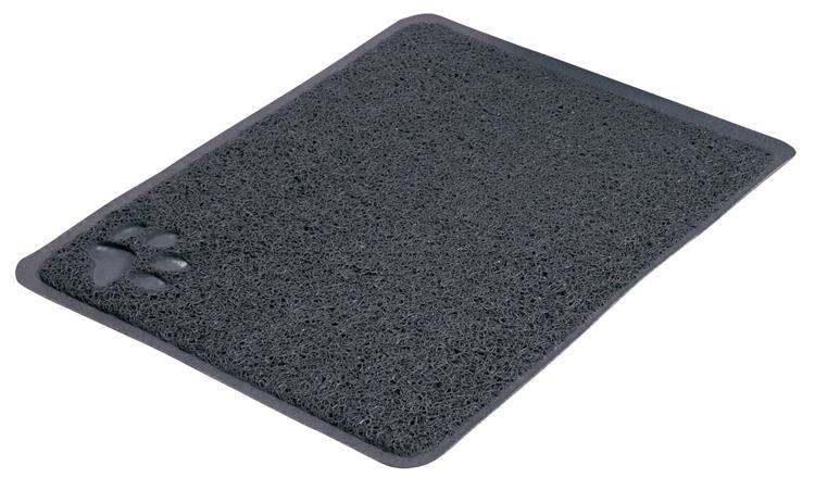 Wycieraczka PCV Trixie pasująca do każdego rodzaju kuwety. Umieszczona przed nią oczyści kotu łapy z nadmiaru żwirku, w ten sposób nie rozniesie go po domu. Z motywem odcisku łapy kota. Mata jest antypoślizgowa, nie przesuwa się po pomieszczeniu. Może być również używana gdy stosujemy do kuwety drobne podłoże.