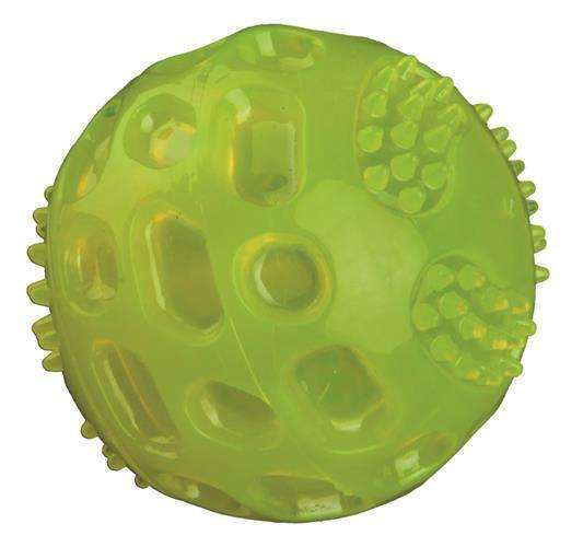 Świecąca piłka dla psa Trixie, wykonana jest z gumy termoplastycznej (TPR). Ma specjalne kolce, które przy gryzieniu masują dziąsła Twojego psa. Idealnie nadaje się do rzucania i aportowania, podczas zabawy w wodzie nie tonie. Piłka dla psa, dzięki której spędzisz ze swoim psem wiele niezapomnianych chwil. Aktywuje się poprzez odbijanie od podłogi. Świeci do 50 godzin, posiada włącznik, dzięki któremu można w każdej chwili wyłączyć opcję świecenia! Wykonana jest z gumy termoplastycznej, by zapewnić bezpieczeństwo psu podczas zabawy.