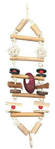 Most wiszący został wykonany z bambusa, skorupy orzecha kokosowego, rattanu, drewna i włókna sizalowego. Posiada drewniany hak, który umożliwia łatwe zamontowanie zabawki w klatce.