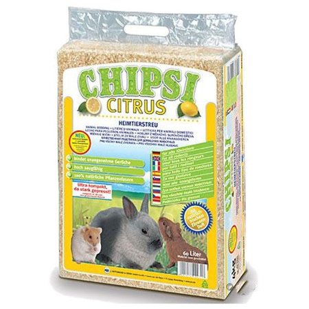 Chipsi Citrus to naturalna podściółka o cytrynowym zapachu. Cytrynowy zapach bazuje tylko i wyłącznie na naturalnych aromatach, bez żadnych dodatków chemicznych. Trociny są bezpyłowe. Produkty Chipsi powstają ze specjalnie dobranych, rodzimych gatunków drzew. Odpowiadają najostrzejszym normom kontroli zgodnie z DIN ISO 9001:Wysoka jakość i ochrona środowiska stoją tutaj na pierwszym miejscu. Trociny idealnie nadają dla się chomików, królików, świnek morskich oraz innych gryzoni.