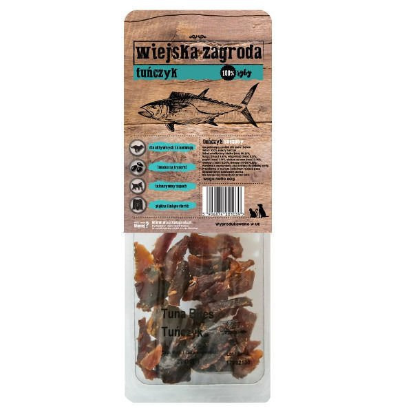 Wiejska Zagroda Tuńczyk firmy Alpha Spirit to miękki, suszony przysmak dla psów i kotów w każdym wieku. Jest pyszny, zdrowy i bez konserwantów. Przygotowywany tylko ze świeżych składników, pozyskiwanych od lokalnych dostawców z ekologicznych hodowli. Produkt jest zapakowany w hermetyczne opakowanie.