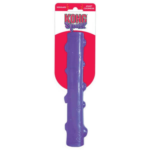 Kong Squeezz Stick to zabawka z piszczałką dla psów. Podłużny kształt ułatwia rzucanie, a piszczałka działa nawet gdy zabawka zostanie przekłuta wiele razy. Jest wykonana z odpornego,nietoksycznego kauczuku. W pełni bezpieczna dla naszego pupila. Zabawkę dodatkowo można łatwo nawlec na gruby sznurek tworząc piszczącą zabawkę szarpaną. Rozmiar M dla psa o wadze poniżej 11 kg.