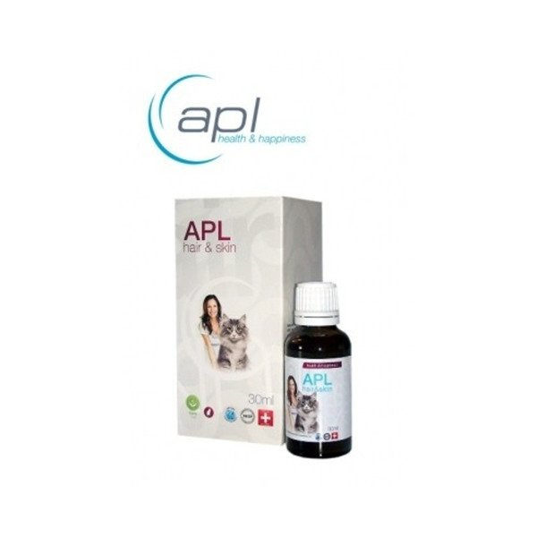 APL hair&skin to nowoczesny preparat służący poprawie zdrowotności i wyglądu skóry oraz okrywy włosowej, który dzięki wysokiej zwartości cynku i biotyny w swoim składzie doskonale sprawdza się w przypadku zwierząt podatnych na choroby skóry. Olej lniany oraz słonecznikowy, zawarte w recepturze APL hair&skin są natomiast cennym źródłem kwasów tłuszczowych. Preparat ten został wzbogacony również o kompleks multiwitaminowy z aminokwasami egzogennymi, dzięki czemu APL hair&skin w pełni pokrywa zapotrzebowanie zwierzęcia na niezbędne witaminy i aminokwasy.