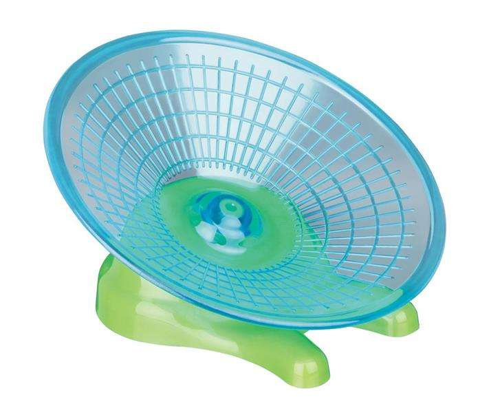Trixie kołowrotek dla myszy, chomika karłowatego posiada antypoślizgową podstawkę, która gwarantuje stabilność produktu podczas użytkowania. Zabawka zapewni Twojemu pupilowi ruch i rozrywkę. Chroni kręgosłup chomika czy myszy, dzięki płaskiej bieżni. Lita powierzchnia z bocznym wzmocnieniem gwarantuje lepszą przyczepność kołowrotka, który ma wyjątkowo płynny i cichy ruch. Zabawkę można myć w zmywarce.