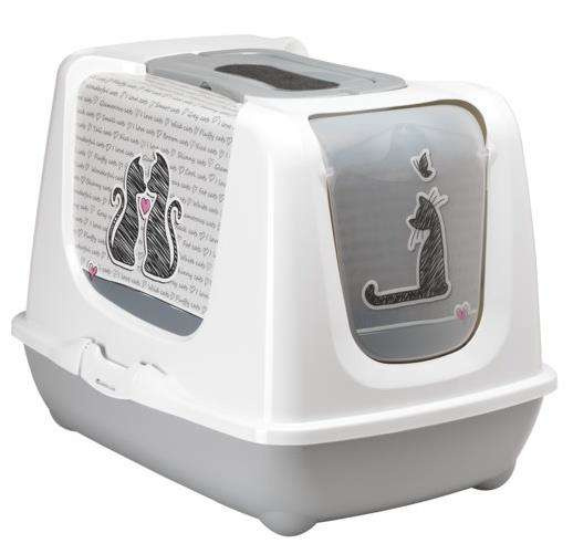 YARRO toaleta Trendy z filtrem i motywem "zakochany kot". Kuweta najwyższej jakości, wykonana z nietoksycznego plastiku - produkt trwały i wytrzymały. Posiada filtr, który oczyszcza powietrze i nie pozwala wydostawać się nieprzyjemnym zapachom na zewnątrz. Dwustronnie uchylane drzwiczki pozwalają swobodnie wchodzić i wychodzić twojemu kotu. Oddzielny spód kuwety w bardzo łatwy sposób umożliwia czyszczenie i wymianę żwirku. Ozdobiona motywem "zakochany kot".