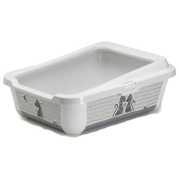 YARRO elegancka biała kuweta z ramką z motywem zakochanych kotów. Ramka zapobiega rozsypywaniu żwirku oraz zabrudzeniu najbliższego otoczenia w mieszkaniu. Kuweta wykonana jest z tworzywa nietoksycznego dla kota, motyw kota nie jest naklejką co sprawia że jest trwały i niezniszczalny.