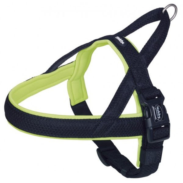 Szelki typu norweskiego firmy Nobby wykonane są z lekkiej siatki wzmocnionej miękką nylonową taśmą oraz podszyciem z neoprenem. Niewątpliwą zaletą szelek jest to, że w stosunku do innych wykonanych z taśmy nylonowej od początku nie wywołują dyskomfortu u psa, gdyż taśma nie jest sztywna. Miękkie podszycie z neoprenu zapewnia Twojemu psu większy komfort podczas długiego spaceru lub joggingu. Dodatkowo szelki nie sprawiają problemów w ich ubieraniu, nawet w przypadku psów, które dotąd za nimi nie przepadały. Dodatkowy uchwyt dla opiekuna pomaga szybko odzyskać kontrolę na pupilem. Ze względu na brak możliwości regulacji szelek w pasie barkowym (regulowany jest tylko pas wokół klatki piersiowej) polecamy je dla psów dorosłych. Szerokość pasków od 2-2,5 do 5 cm, w zależności od rozmiaru szelek.