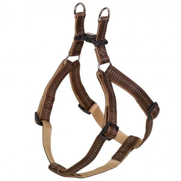 Wygodne i modne szelki. Łatwo można dopasować je do każdego psa, gdyż każdy rozmiar posiada dużą możliwość regulacji. Wykonane z podwójnej nylonowej taśmy z wodoodpornym i miękkim podbiciem. Bardzo łatwe w zakładaniu (jedna klamra zapinana w kłębie). Wygodne dzięki pasowi na klatce piersiowej, dzięki któremu siły psa ciągnącego nie działają na szyję.