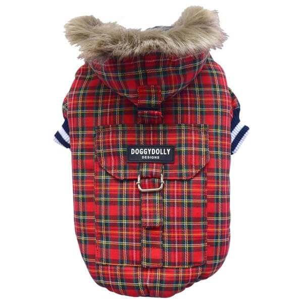 Firma Doggy Dolly proponuje dla psa ubranko, kurtkę z kapturem w szkocką kratę. Teraz Twój pies może Ci towarzyszyć podczas jesiennych spacerów i nie będzie odczuwał zimna. Na plecach umieszczono stylową kieszeń z logo Doggy Dolly. Idealnie sprawdzi dla psów małych ras: Yorkshire Terier, Szpic Miniaturowy, Pudel Toy czy Maltańczyk. Kaptur jest wykończony sztucznym futerkiem. Kurtka w modną szkocka kratę wyróżnią Twojego psa w tłumie. Ubranko można prać w temperaturze 30 oC.