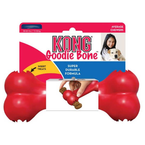 Zabawka Goodie Bone Kong w kształcie kostki, polecana przez weterynarzy i trenerów. Twój pies na pewno ją pokocha! Wykonana z odpornego, nietoksycznego kauczuku przy produkcji, którego nie użyto sztucznych barwników, ani utrwalaczy. W pełni bezpieczna dla Twojego pupila. Elastyczna konstrukcja sprawia, że psu nie może stać się krzywda nawet przy łapaniu zabawki w locie. Magiczna kość, którą można napełnić ciasteczkami lub innymi psimi przysmakami.