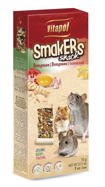 Smakers przeznaczony dla gryzoni, w której diecie wskazana jest obecność białka pochodzenia zwierzęcego, zawiera liofilizowany boczek oraz żółty ser. Bazę stanowi makaron jajeczny, którego twardość zapewnia prawidłowe ścieranie siekaczy. Przekąska ta to źródło pełnowartościowych białek. Smakowity suszony pomidor zawiera antyutleniacze przeciwdziałające nowotworom, witaminę A, C, K, witaminy z grupy B, cynk, fosfor, magnez, żelazo, kwas foliowy i inne mikroelementy.