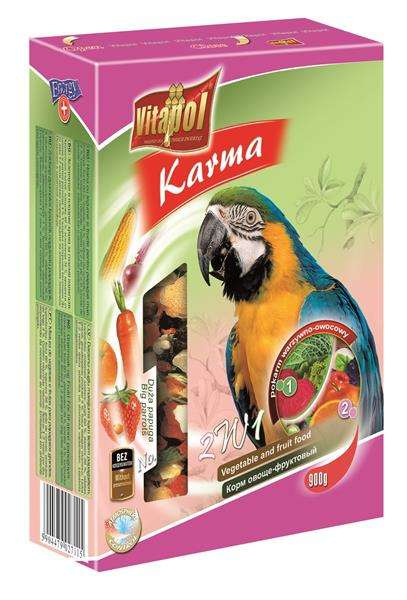 Skład : ananas, papaja, rodzynki, fasola Mung, banan, marchew suszona, płatki grochowe, jabłko suszone, nasiona dyni obłuszczone, por, owoc jarzębiny, owoc dzikiej róży, płatki kukurydziane, owoc jałowca czarnego, papryka chili, pszenica prażona
