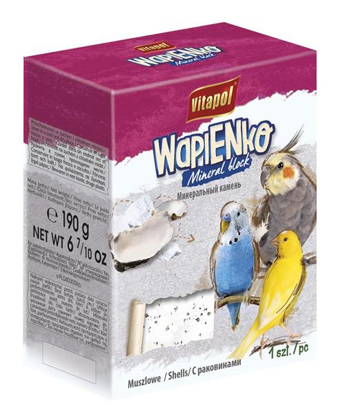 Niezastąpiony suplement ptasiej diety. Wapno jest podstawowym składnikiem budulcowym kośćca, niedobór prowadzi do niedorozwoju i krzywizny, a u starszych ptaków do osłabienia kości i ich łamliwości. Wapń jest również niezbędny do budowy skorupek ptasich jaj w trakcie lęgów oraz w okresie pierzenia. Kostka wapienna została wzbogacona o kawałki muszli wspomagające również rozcierania ziarnistego pokarmu w żołądku ptaka.