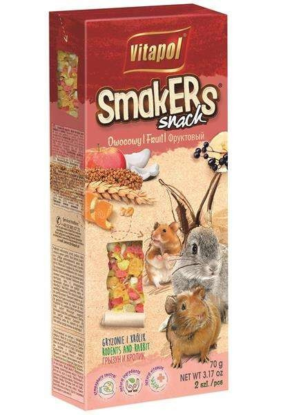 Smakers stanowi urozmaicenie i uzupełnienie diety gryzoni i królików. Bogaty w wiele witamin, minerałów i pektyn, których źródłem są dojrzałe, najlepszej jakości owoce, takie jak jabłko, malina, czerwona porzeczka czy czarny bez. Bez czarny dostarcza organizmowi oprócz witaminy C karotenoidów i jodu. pektyny, garbniki oraz sole mineralne. Obecność wiórek kokosu wzbogaca kolbę w żelazo i potas oraz wartościowe białko.