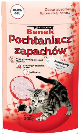 Pochłaniacz Owocowy to produkt oparty na bazie żelu krzemionkowego, całkowicie neutralizuje nieprzyjemne zapachy pojawiające się w kuwecie. Charakteryzuje się wysoką zdolnością wchłaniania powstającej wilgoci.