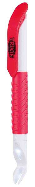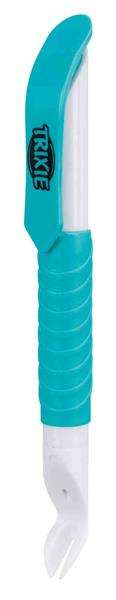 Trixie przyrząd do usuwania kleszczy z lampką LED wykonany jest z plastiku. W łatwy sposób pozbędziesz się pasożyta ze skóry Twojego pupila. Urządzenie hamuje przenoszenie niebezpiecznych patogenów. Łatwiejsze znalezienie kleszcza, zwłaszcza w ciemnej warstwie, dzięki zintegrowanej lampie LED. Poręczny i wygodny klips sprawi, że w szybki sposób usuniesz kleszcza czy pchły. Zawsze usuwaj kleszcze za pomocą specjalnych narzędzi. Te, które stosują rotację, są najbardziej skuteczne. Umieść pincetę jak najbliżej części jamy gębowej kleszcza. Gdy pozycja jest odpowiednia, obróć narzędzie 3 - 4 razy, aż kleszcz wyjdzie ze skóry.