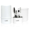 Wszystkie narzędzia do pielęgnacji są przechowywane pionowo w poręcznym pojemniku, co zapobiega uszkodzeniu zębów grzebieni czy szczotek. Dodatkowo pokrywa pojemnika została zaprojektowana jako poręczny pojemnik do przechowywania wyczesanej sierści kota. Szczotka delikatnie przesuwając się przez futro Twojego kota usuwa plątaniny i nieczystości dzięki miękkim końcówkom szpilek. Wierzchołki szpilek są tępe, aby nie dopuścić do zranienia skóry. Szczotka otworzy płaszcz sierści, aby umożliwić przepływ powietrza pomiędzy włosami, co daje długowłosemu kotowi żywy, puszysty płaszcz po każdej sesji pielęgnacji zestawem Catit. Filcak z łatwością zrywa matowe włosy i kołtuny, których Twój kot nie może samodzielnie usunąć. Zachowaj ostrożność przy używaniu długiego filcaka, gdyż ma ostre ostrza! Długowłosym kotom z gęstym futrem nie jest obca matowa sierść czy grube i twarde kuleczki zwartej sierści. Kulki mogą powodować ból, ponieważ naciągają one skórę Twojego pupila. Maty są uformowane przez sęki futra lub przez materię, która się zaplątuje, a kot sam tego nie jest w stanie usunąć. Mogą one rosnąć, więc najlepiej jest natychmiast usunąć wszelkie znalezione w futrze, ponieważ są trudniejsze do usunięcia, gdy są większe lub bardziej splątane. Możesz również użyć tego narzędzia do przecierania szczególnie gęstego futra, które często tworzy się z tyłu klatki piersiowej lub pod pachami. Szczotka z okrągłą główką będzie masować skórę Twojego kota, jednocześnie rozczesując i wygładzając cały płaszcz sierści. Usuwa luźne włosy i łupież, a także rozplątuje drobne kołtuny, jednocześnie delikatnie stymulując skórę. Może być również używana do szczotkowania obszaru głowy kota w bezpieczny sposób i usuwania zanieczyszczeń, które utknęły w długich włosach wokół jego ust. Prosty grzebień pomaga utrzymać skórę w czystości, usuwając łupież i inne drobne cząsteczki brudu, a także usuwa luźne włosy. Dłuższe szpilki przeczesują podszerstek, podczas gdy krótsze szpilki przeczesują wierzchnią warstwę, podczas gdy kombinacja dwóch rozmiarów zapewnia lepszą przyczepność i dokładniejsze szczotkowanie, aż do skóry. Ponadto szpilki grzebienia zapobiegną zaplątaniu w splotach sierści. Cążki pozwalają szybko przyciąć pazury Twojego kota. Uważaj, przycinając paznokcie, cięcie za głęboko może spowodować uszkodzenie nerwów. To małe i mocne narzędzie pomoże przyciąć ostre krawędzie paznokcia, aby ułatwić życie zarówno Tobie, jak i kotu. Nawet gdy kot jest słodki i kochający, ostre pazury mogą przeszkadzać Ci podczas uścisku i przypadkowo Cię zadrapać. Obcinaczki przeznaczone do przycinania ludzkich paznokci są zbyt duże dla ostrych pazurów kota, w wyniku czego mają tendencję do dzielenia pazurów. Cążki Catit do paznokci zostały stworzone specjalnie z myślą o paznokciach kota, ograniczając ryzyko zranienia.