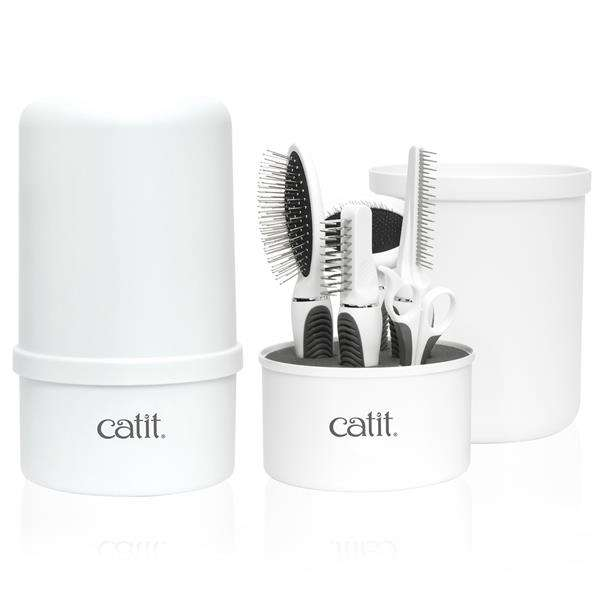 Regularne pielęgnowanie sierści Twojego kota zmniejsza w znacznym stopniu ilość zrzucanej sierści w domu i co bardzo ważne wzmacnia się więź między Tobą a pupilem. Każda sesja pielęgnacyjna to chwila czasu między Wami, więc ciesz się nią! Catit zestaw pielęgnacyjny dla kotów z krótką sierścią zawiera szczotkę szpilkową, filcak, szczotkę drucianą, grzebień i obcinaczkę do paznokci.