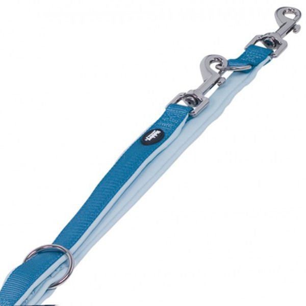 Wytrzymała regulowana smycz firmy Nobby wykonana jest z mocnej, nylonowej taśmy podszytej neoprenem. Miękkie podszycie sprawia, że trzyma się ją pewnie i wygodnie. Smycz dzięki wszytym zaczepom można przedłużyć (na 1,75m) lub skrócić na długość 1 m. Smycz można skompletować z szelkami norweskimi Nobby Classic Preno w tym samym kolorze.