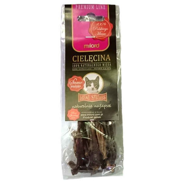 Milord suszona cielęcina to doskonały przysmak dla psów i kotów. Mięso poddawane jest suszeniu ciepłym powietrzem, a zastosowany odpowiedni proces, pozwala na zachowanie wszystkich wartości odżywczych. Optymalna zawartość tłuszczu i włókna surowego sprawia, iż przysmak jest idealny dla zwierząt z nadwagą i wrażliwym układem pokarmowym. Z uwagi na bardzo wysoką zawartość białka produkt znajduje również zastosowanie jako karma uzupełniająca.