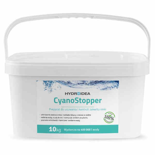 Hydroidea CyanoStopper to rewelacyjny preparat do zapobiegania i kontroli rozwoju zakwitu sinic w zbiornikach wodnych wszelkiego rodzaju. Selektywnie zwalcza sinice i rozkłada toksyny sinicowe w wodzie w okresie kilku dni od zastosowania. CyanoStopper wykorzystuje nadwrażliwość sinic na tlen atomowy i jest całkowicie bezpieczny dla użytkowników wód i innych organizmów wodnych. Poprawia walory rekreacyjne, użytkowe i gospodarcze zbiorników wodnych zwiększając w nich natlenienie i intensyfikując naturalne procesy samooczyszczania się wód.