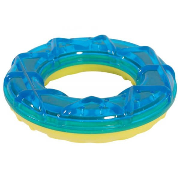 Zolux zabawka kółko dla psa, wykonana z wytrzymałego TPR (kauczuk termoplastyczny). Intensywnie pielęgnuje zęby oraz dodatkowo może być wypełniona wodą i zamrożona do późniejszego chłodzenia w upalne dni. Podczas zabawy rozmarzająca woda przepływa przez pory. Twój pies ma zapewnioną wielogodzinną frajdę dzięki orzeźwiającym zabawkom, które ochłodzą go w upalne dni. Odpowiednia także dla szczeniąt.