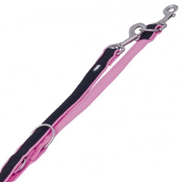 Lekka regulowana smycz firmy Nobby wykonana jest z lekkiej i mocnej, nylonowej siatki podszytej neoprenem. Miękkie podszycie sprawia, że trzyma się ją pewnie i wygodnie. Smycz dzięki wszytym zaczepom można przedłużyć (na 1,75m) lub skrócić na długość 1 m. Smycz można skompletować z szelkami norweskimi Nobby Mesh Preno w tym samym kolorze.