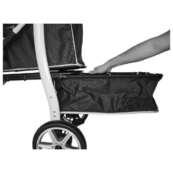 a po złożeniu zajmuje go bardzo niewiele. Pod wózkiem znajduje się koszyk, w którym możemy przewozić zakupy, smakołyki, bądź zabawki dla psa. Schowek na dnie Buggy Monaco służy dodatkowo jako Twój kosz na zakupy!!