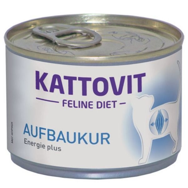 Kattovit Aufbaukur Energie Plus (znany również pod nazwą Convalescence) to mokra karma przeznaczona dla kotów cierpiących na brak energii. Najczęściej problem ten pojawia się przy niedożywieniu, dużej lub małej niedowadze oraz przewlekłych chorobach. Pokryje zapotrzebowanie kaloryczne także kotnych kotek oraz kociaków podczas rozwijania się. Warto wspomnieć, że koty aktywne również potrzebują dodatkowej energii. Karma zawiera dużą ilość lekkostrawnego białka w postaci kurczaka, wołowiny, ryb, wątróbki oraz węglowodanów zawartych w ryżu, który nie uczula kotów.