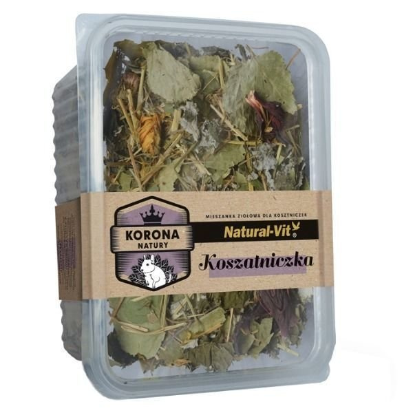 Korona Natury to najnowsza seria od producenta Natural Vit. Produkty z linii Korona Natury są idealnie dostosowane do gryzoni, poprzez odwzorowanie ich diety, jaką mają w warunkach naturalnych. Mieszanka ziołowa bez dodatku ziaren z serii Korona Natury będzie idealnym przysmakiem dla twojej koszatniczki. W skład mieszanki Natural Vit wchodzą aromatyczne trawy, kwiaty oraz zioła. Za florę jelitową odpowiadają naturalne prebiotyki, które wpływają bardzo korzystnie na jej rozwój. Mieszanka ułatwia trawienie i przyswajanie nowych składników pokarmowych, dlatego będzie idealnym dodatkiem do karmy podstawowej. Ten smaczny posiłek poprawi zdrowie i witalność koszatniczki. Warto wspomnieć o tym, że mieszanki tej marki są w całości ręcznie przygotowywane!