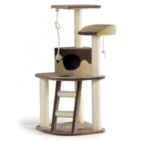 Drapak Smart firmy Beeztees, to 3 poziomowa wieża z mnóstwem atrakcji dla Twojego kota. Na każdym poziomie zamontowano drapak pokryty sizalem, który idealnie nadaje się do tępienia pazurków. Myszka na sznurku i sznur z pętelką to dodatkowa atrakcja dla kota. Beeztees Smarty to prawdziwy pałac dla Twojego małego przyjaciela. Po wejściu na drabinę kot odkryje budkę na relaksującą drzemkę, która jest ciemna w środku, dzięki czemu będzie spał lepiej niż kiedykolwiek. Drapak został wykonany z miękkiego pluszu.