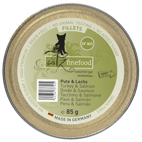 Karma idealna dla mięsożercy, pełnoporcjowe filety z najlepszego mięsa z polędwicy. Filety catz finefood nadają się do stałego, codziennego karmienia. Aromatyczne, soczyste, kompletne menu dostarcza kotu wszystkich składników odżywczych, których potrzebuje każdego dnia. Zawiera najlepsze filety z kurczaka i indyka, oraz podroby, uzupełnione minerałami i cennym olejem. Zawiera nasiona chia, które są bogate w niezbędne nienasycone kwasy tłuszczowe i wspierają trawienie. Bez dodatków, takich jak aromaty, barwniki, konserwanty czy cukier. Żywność, która jest naturalnie smaczna.
