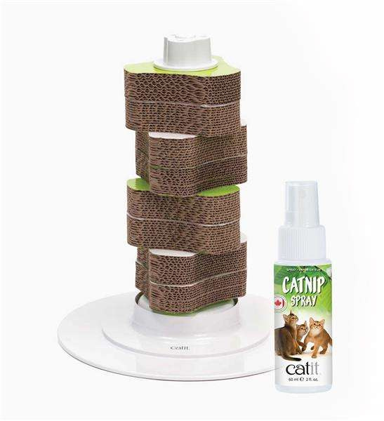 Produkty Catit Toys zostały stworzone, aby Twój kot mógł korzystać ze wszystkich swoich zmysłów. Koty są urodzonymi łowcami, dlatego reagują na ruch i dźwięk. Zabawki Catit pobudzają mruczących domowników i zachęcają do aktywności. Obudź w swoim kanapowcu prawdziwego tygrysa! Drapak kartonowy Catit Senses 2.0 dla kota od Hagen pomaga zaspokoić kocią potrzebę regulacji pazurków i drapania, oszczędzając meble. Podczas drapania koty rozluźniają się, rozciągają mięśnie, rozprowadzają zapach i regulują pazurki. Zapewnij swojemu ulubieńcowi naturalny drapak w kształcie małego drzewa. Drapak kartonowy Catit składa się z wytrzymałej górnej śruby, korpusu i ekstra stabilnej szerokiej podstawy z 8 elementami z tektury falistej. Każdy kot ma inne preferencje, szczególnie jeśli chodzi o drapanie. Tekturowe elementy drapaka możesz obracać, przekładać i układać w różnych konfiguracjach. Tekturowe części drapaka Catit są po jednej stronie zielone, a po drugiej - białe. Zmieniaj ustawienia elementów i co kilka dni twórz zupełnie nowy drapak! Ergonomiczny kształt tekturowych elementów umożliwia kotu wygodne i satysfakcjonujące drapanie.