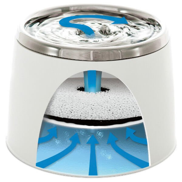 Akcesoria marki Hagen Catit są inspirowane codziennymi kocimi potrzebami. Produkty do picia uwzględniają nie tylko podstawowe wymagania kotów, ale także spełniają specyficzne wymogi ich opiekunów. W ofercie marki Catit znajdziesz artykuły, które pomogą Ci w codziennej opiece na Twoim ukochanym, mruczącym pupilem. Fontanna wodna Catit Fresh & Clean dla kota od Hagen jest stylowym poidłem, które gwarantując krystaliczną wodę, zachęca pupila do częstego pobierania płynów. Miska, z której pije zwierzę, została wykonana ze stali nierdzewnej, a dzięki obniżonemu brzegowi nie wywiera nacisku na kocie wąsy. Wygląd i kolorystyka fontanny pasują do każdego wnętrza, a dzięki energooszczędnej pompce nie zużyjesz dużo energii. Kiedy Twój kot pije dużo wody, dba nie tylko o nawodnienie organizmu, ale także wspiera funkcjonowanie dróg moczowych, zmniejszając ryzyko wystąpienia infekcji. Duża powierzchnia fontanny sprawia, że filtrowana woda jest doskonale natleniona. Filtr Dual Action pochłania zanieczyszczenia i redukuje nieprzyjemne zapachy, dzięki czemu Twój kot ma zawsze świeżą, czystą i chłodną wodę. Woda przepływa przez dwustopniowy filtr oczyszczający ją z zawiesin i osadów, zapobiegający rozwojowi bakterii i usuwający chlor, tak jak jego pochodne oraz zmiękcza wodę usuwając z niej magnez i wapń przez co chroni układ moczowy kota.