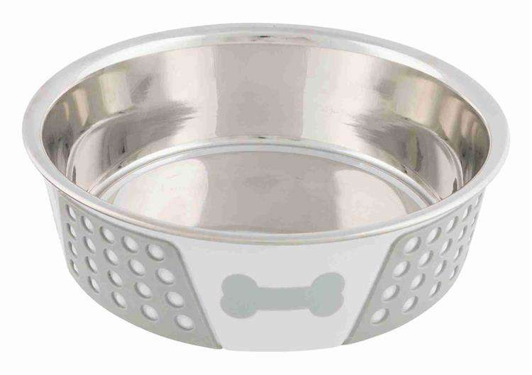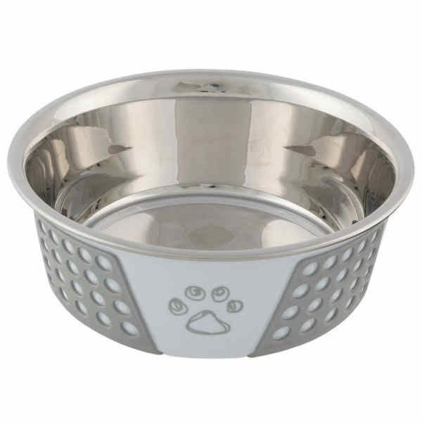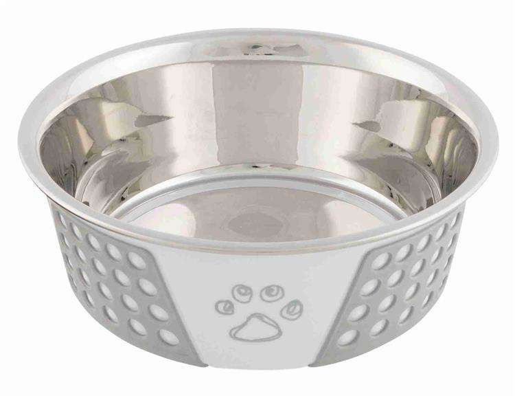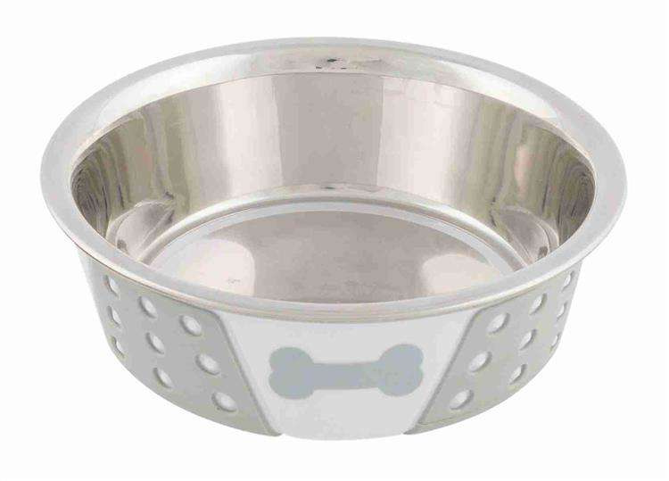 Trixie miska do podawania wody lub karmy. Wykonana jest ze stali nierdzewnej pokrytej dodatkowo plastikową powłoką, bardzo łatwa do utrzymania w czystości. Dzięki antypoślizgowej podkładce miska stabilnie utrzymuje się w miejscu i nawet najbardziej energiczny pies będzie mógł się w całości skupić na jedzeniu. Efektowny wygląd czyni z tej miski świetny dodatek do każdego wnętrza.