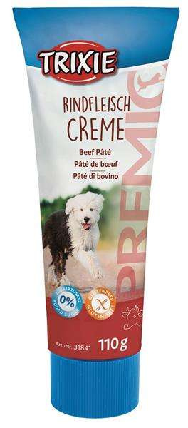 Trixie przysmak Premio pasztet z wołowiny, w tubce, to doskonały dodatek bezglutenowy do codziennej diety Twojego psa. W tym przysmaku została obniżona zawartość soli oraz przypraw. Ma wyjątkowy smak, aromat oraz bardzo delikatną konsystencję. Pasztet ma uniwersalne zastosowanie: jako dodatek do karm, jako nagroda i przekąska, doskonały w celu zachęcania do przyjmowania leków, tabletek, karm oraz preparatów specjalistycznych. Szczególne polecany dla wybrednych psów. Może służyć jako nadzienie do zabawek na przysmaki dla psa.