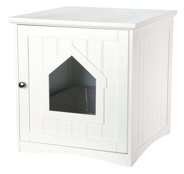 Designereska nowość od Trixie. Domek dla kota spełniający dwie ważne funkcje, może posłużyć jako wyjątkowe legowisko lub praktyczna kuweta. Posiadasz kociaka i lubisz kiedy Twój dom wygląda stylowo? Chatka uatrakcyjni wygląd każdego jasnego wnętrza. Wykonana została z lakierowanych płyt MDF najwyższej jakości. Posiada otwory wentylacyjne z tyłu, które zapewniają odpowiednią cyrkulację powietrza. Drzwi posiadają wbudowane i praktyczne zapięcie magnetyczne. Produkt jest łatwy w czyszczeniu.