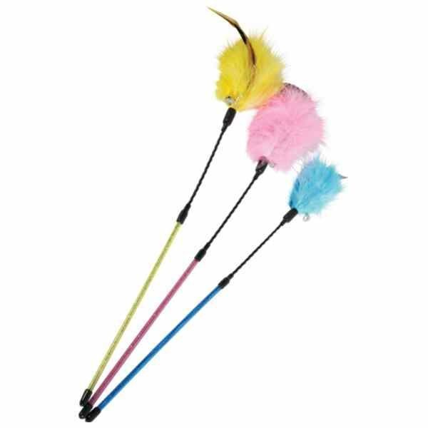 Zolux wędka z piórkiem to wyśmienita zabawka dla kota, która sprawi dużo radości Twojemu zwierzakowi. Uchwyt wykonany jest z bezpiecznego dla zwierząt, wytrzymałego tworzywa. Kolorowe piórka wraz z dołączonym dzwonkiem, zwiększają atrakcyjność zabawki. Koty są mistrzami gonitw. Uwielbiają zabawki, za którymi mogą biegać i próbować je schwytać. Wędka to idealna zabawka, która pozwala na wspólną zabawę opiekuna z pupilem i zachęca go do aktywności. Polecana szczególnie dla kotów przebywających wyłącznie w domu. Dostępna w trzech kolorach: różowym, niebieskim oraz żółtym