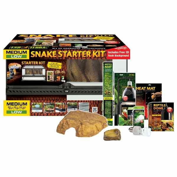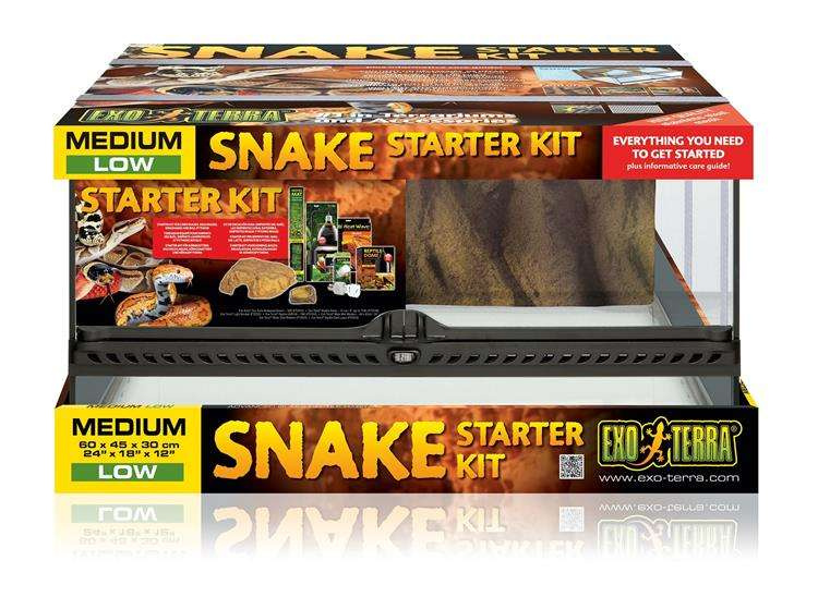 Exo-Terra zestaw startowy, idealny dla węży takich jak Wąż Zbożowy, Wąż Mleczny czy młodszy Pyton Królewski. Zawiera wszytko co potrzeba, aby zapewnić Twojemu pupilowi idealne warunki do życia. Terraria szklane Exo-Terra zostały zaprojektowane przez europejskich herpetologów. Przednie drzwi otwierające umożliwiają łatwy dostęp w celu sprzątania czy karmienia. Specjalnie zaprojektowany zamek zapobiega ucieczce, a każde ze skrzydeł można otworzyć oddzielnie. Pełnoekranowa górna wentylacja umożliwia przenikanie UVB i podczerwieni oraz jest całkowicie zdejmowana, co zapewnia łatwy dostęp podczas dekorowania. Przy tylnej ścianie znajdują się otwory na kable. Dolna płyta jest lekko uniesiona w celu bezpiecznego montażu maty grzewczej. Terrarium do wysokości przednich wlotów powietrza jest całkowicie wodoszczelne. Wszystkie zawarte w zestawie akcesoria są oryginalne.