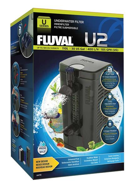 Fluval U2 to filtr wewnętrzny, dedykowany do zbiorników 45-110l słodkowodnych, jak i morskich. Włoska marka Fluval od lat słynie z innowacyjnych i ciekawych rozwiązań w technice akwarystycznej. Specjalizuje się w produkcji grzałek i filtrów. Filtr może pracować w pionie i poziomie. Posiada trójdrożny przepływ: górny wylot dający możliwość maksymalnej cyrkulacji wody i napowietrzania, system natryskowy, zapewniający równomierny, łagodny ruch wody oraz dolny wylot do głębokiej wody, umożliwiający jej maksymalną cyrkulację. Uchylana górna klapa filtra umożliwia wyczyszczenie wkładów bez konieczności wyjmowania całego filtra z wody. System zapewnia optymalną filtrację wody pod względem mechanicznym, biologicznym oraz chemicznym.