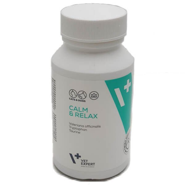 Preparat VetExpert Objawy Strsu ( dawniej: Сalm & Relax ) dla psa, kota jest przeznaczony do wspomagania zwalczania objawów stresu i niepokoju. Unikatowa kapsułka Twist off gwarantuje wysoką smakowitość i łatwość podania, gdyż kapsułka jest jadalna. W skład Calm&Relax wchodzi powszechnie stosowany również w preparatach dla ludzi ekstrakt z kozłka lekarskiego (Valeriana officinalis) oraz ekstrakt z liści zielonej herbaty, które mają działanie wyciszające i redukują napięcie. Suplement zakupiony w Megazoologiczny.pl wzbogacony jest tryptofanem i tauryną, które wzmacniają antystresowe działanie. Nasi pupile, zupełnie jak ludzie, są różni. W związku z tym różne mogą być ich reakcje na otoczenie. Coś, co dla jednego psa czy kota będzie przyjemnością, u drugiego spowoduje ogromny niepokój. Warto obserwować naszych pupili i być przygotowanym na szybką reakcję w sytuacjach, które są potencjalnie stresujące. Do takich należą: separacja, głośne dźwięki, podróż, przeprowadzka, utrata towarzyszącego zwierzaka, wizyta u weterynarza, nowy domownik, konieczność wyjścia na spacer z inną niż zwykle osobą, a także zmiana trybu życia opiekuna, która wiąże się ze zmianą godzin karmienia i spacerów.