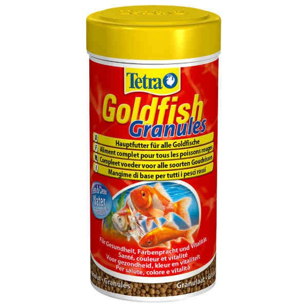 Tetra Goldfish Granules to kompletny pokarm w postaci unoszących się na powierzchni wody granulek dla wszystkich gatunków złotych ryb i innych rybek zimnolubnych. Zapewnia pożywną i zróżnicowaną dietę, wzbogaconą o formułę BioActive, wspierającą system odpornościowy oraz zapewniającą długie życie ryb. Karma dodatkowo poprawia ubarwienie.
