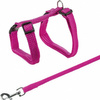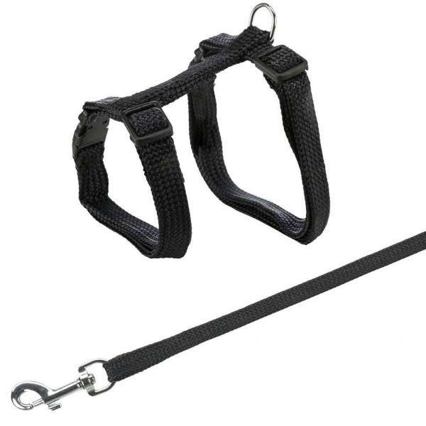 Szelki regulowane ze smyczą dla kota. Wykonane z podwójnej taśmy nylonowej. Zapinane na dwie plastikowe klamry. Płynna regulacja wielkości. Do szelek dołączona jest smycz zapinana na karabińczyk. Taśma charakteryzuje się bardzo dużą wytrzymałością mechaniczną przy zachowaniu znacznej elastyczności, tak niezbędnej przy kontakcie z ciałem. Nie powodują odparzeń nawet przy długim kontakcie ze skórą. Łatwe do czyszczenia.