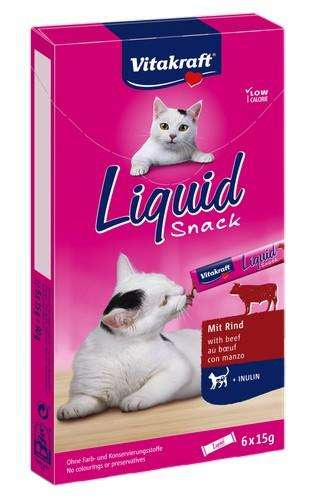 Vitakraft Liquid Snack to niskokaloryczny przysmak dla kota w postaci kremowej pasty o smaku wołowiny. Z dodatkiem inuliny - naturalnego prebiotyku, stymulującego wzrost korzystnej mikroflory jelit. Pakowany w pojedyncze saszetki w celu zapewnienia stałej świeżości. Bez cukru, sztucznych konserwantów i barwników. Opakowanie zawiera 6 saszetek.
