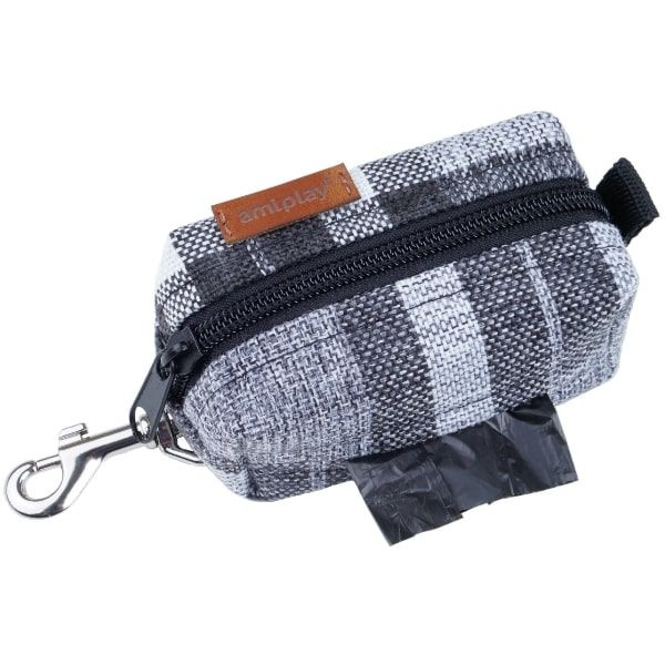 Stylowe torebeczki na worki do psich odchodów firmy Amiplay z linii London charakteryzują się swoją oryginalnością i ponadczasowością. Połączenie starodawnej kraty z elegancką tkaniną tworzy niesamowity i wyjątkowy wzór. Akcesoria z kolekcji London wykonane są z wysokiej jakości tkaniny o splocie płóciennym, która została dodatkowo podszyta w celu zwiększenia ich wytrzymałości. Wygląda jak niewielkie etui na klucze lub zgrabny portfelik. Bez problemu można przymocować te etui do paska, szlufki przy spodniach, a nawet do smyczy. Zamykane na zamek, dzięki czemu nie ma możliwości zgubienia woreczków podczas zabawy z psiakiem. Dodatkowo opakowanie na odchody posiada wygodny otwór, który umożliwia szybkie i praktyczne korzystanie z woreczków znajdujących się wewnątrz.