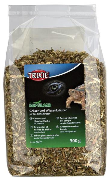 Trixie trawy i zioła dla żółwia lądowego to mieszanka będąca karmą uzupełniającą, dla żółwi lądowych i innych gadów roślinożernych. Mieszanka zbierana na łące jest bogata w błonnik i zawiera małą ilość protein. Dietetyczny błonnik i naturalne substancje roślinne wspomagają aktywne trawienie i stymulują system odpornościowy. Stosunek wapnia do fosforu wynosi (2:1).