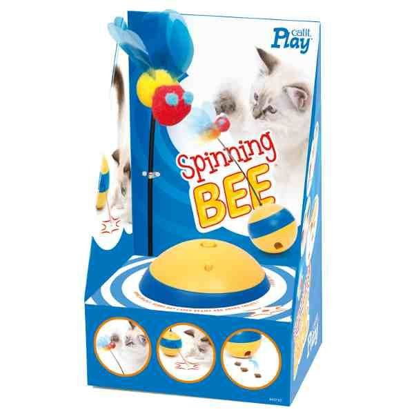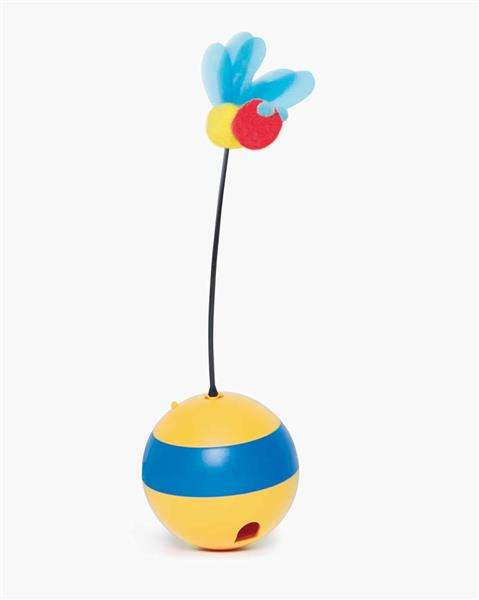Catit Play Spinning Bee to wszystkie ulubione kocie zabawki w jednym. Pobudzi do zabawy nawet najbardziej leniwego kota. Zabawka szaleńczo się obraca, wymachując pluszową pszczołą na sprężynie oraz gubiąc wypadające z niej smakołyki. Za pomocą przycisku można dodatkowo włączyć przerywaną wiązkę lasera, która pobudzi małego drapieżnika do pogoni za czerwonym punktem. Produkt działa na wymienne baterie AA (brak w zestawie).