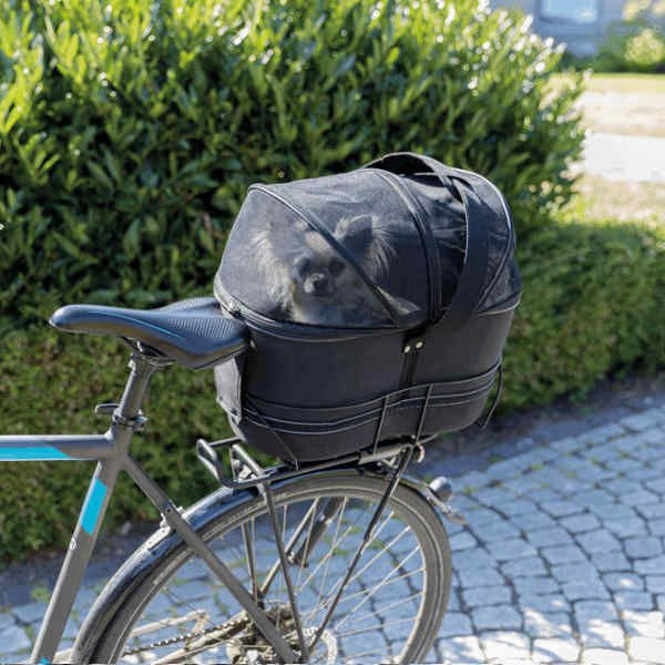 Trixie transporter rowerowy na wąski bagażnik o wymiarach 8,5-12 cm jest idealny do transportu psów i kotów do wagi 6 kg. Wykonany z wytrzymałego, trwałego poliestru. Posiada wstawki z siatki dla polepszenia cyrkulacji powietrza, miękką wyściółkę z flauszu oraz krótką smycz. Transporter można ściągnąć ze stelaża, dzięki błyskawicznemu odpięciu rzepów i używać poza rowerem. Odblaskowe paski dodatkowo zwiększają bezpieczeństwo Twoje i pupila. Szybki i prosty montaż na bagażniku rowerowym. Należy pamiętać o maksymalnej ładowności kosza. Cierpliwie zapoznaj pupila z koszem przed pierwszą podróżą, użyj krótkiej smyczy aby zabezpieczyć psa w podróży.
