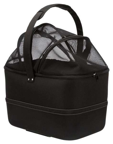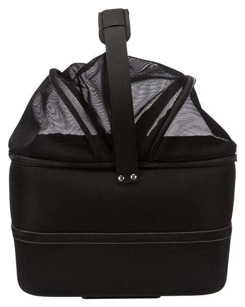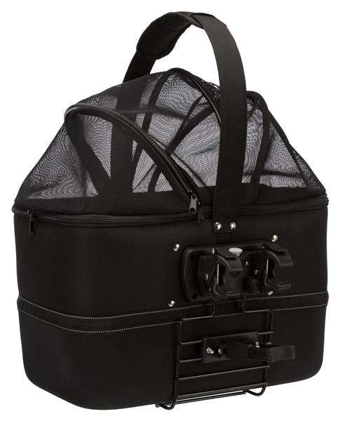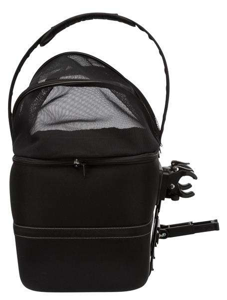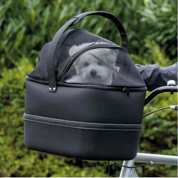 Trixie transporter rowerowy na przód roweru jest idealny do transportu psów i kotów do 6kg. Wykonany z odzyskującego kształt materiału EVA. Posiada wstawki z siatki dla polepszenia cyrkulacji powietrza, miękką, wyjmowaną poduszkę, krótką smycz oraz dodatkową powłokę przeciwdeszczową. Transporter można błyskawicznie odpiąć za pomocą zatrzasków i używać poza rowerem. Szybki i prosty montaż. na bagażniku rowerowym.